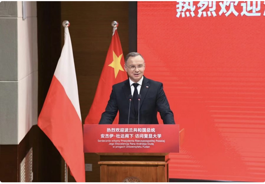 图为去年波兰总统杜达在上海发表演讲。本报记者张驰摄
